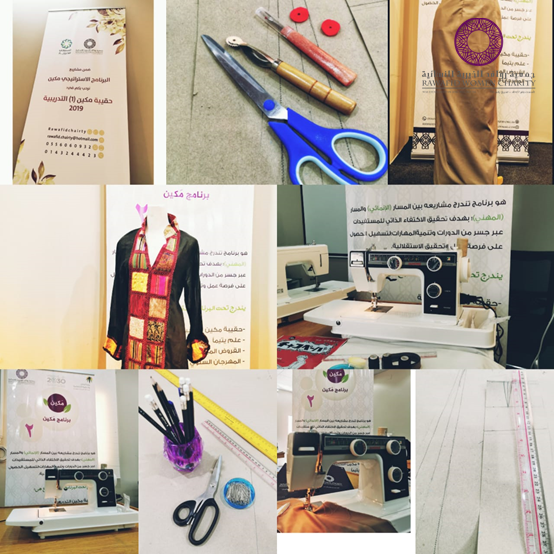 - دورة أساسيات الخياطة والتطريز: حيث تهدف الدورة إلى تمكين المتدربات بكيفية اخذ القياسات وخياطة التصميم.